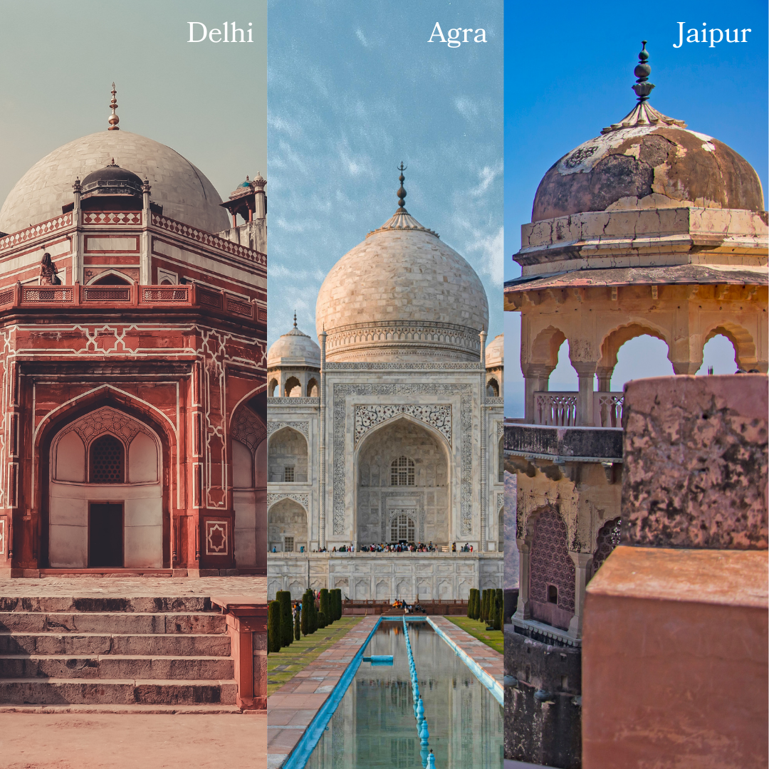 The Golden Triangle is a popular tourist circuit that connects Delhi, Agra, and Jaipur, forming a triangle on the map. It offers a mix of heritage, culture, and architecture.